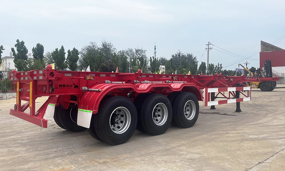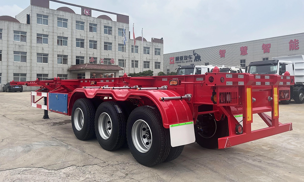 TONGYA skeletal trailer can be configured for specific container combinations, minimizing the unladen weight. Can be configured individually for: 20h, 30′, 40′, 45′, 2×20′ or any combination of all of these containers.