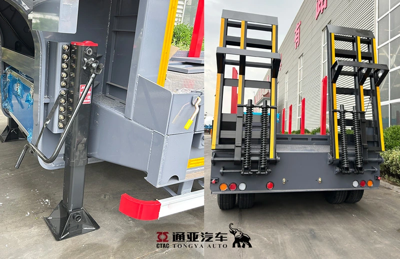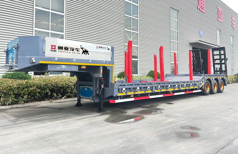 High Low High 60T Low Bed Semi Trailer with Column|100 Ton Low Bed Semi Trailer Truck Price with Ramp |