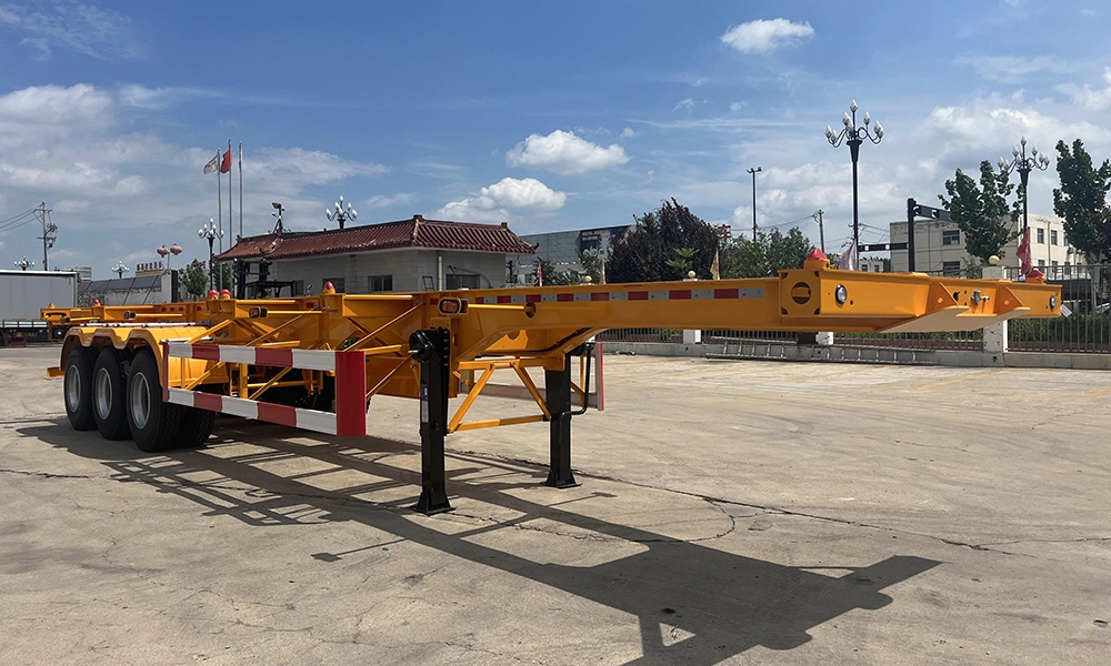 TONGYA skeletal trailer can be configured for specific container combinations, minimizing the unladen weight. Can be configured individually for: 20h, 30′, 40′, 45′, 2×20′ or any combination of all of these containers.